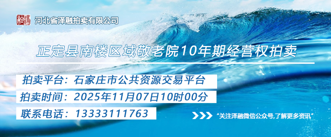 - [拍賣公告]正定縣南樓區(qū)域敬老院10年期經(jīng)營權(quán)拍賣(三次)20251107